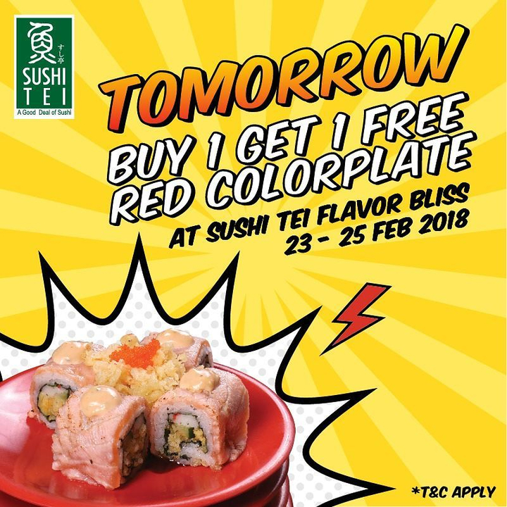 Mana nih pecinta makan di Sushi Tei? Mending kamu siapin kantong dan perutmu dari sekarang, karena Sushi Tei lagi ada promo Buy 1 Get 1 Free Red Colorplate khusus di Sushi Tei Flavor Bliss, Alam Sutera. Menarik banget, kan?