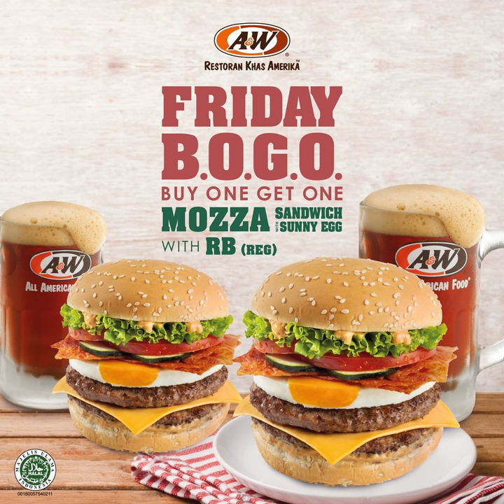 Kesempatan terakhir untuk dapetin promo Buy One Get One dari A&W. Syaratnya, kamu cuma perlu membeli produk A&W apapun, dan maksimal 2 paket Buy 1 Get 1 Free every Friday per tamu. Hanya berlaku di tanggal 23 Februari 2018 aja ya guys.